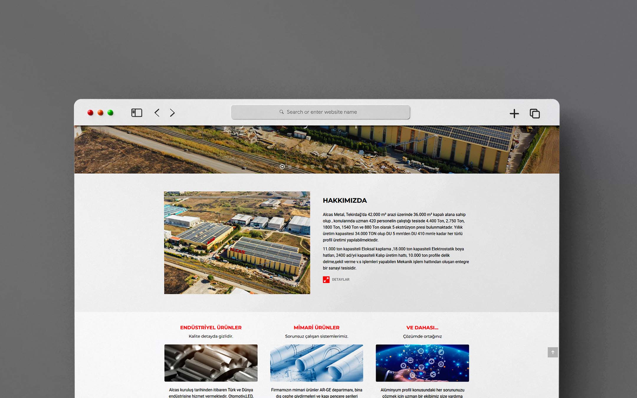 Alcas Alüminyum için tasarladığımız web sitesi, alüminyumun sağlamlığını modern ve yalın bir dijital tasarımla buluşturdu. Her detayında güven ve profesyonellik hissi taşıyan bu platform, markanın sektördeki güçlü duruşunu etkileyici bir görsel kimlikle yansıttı.