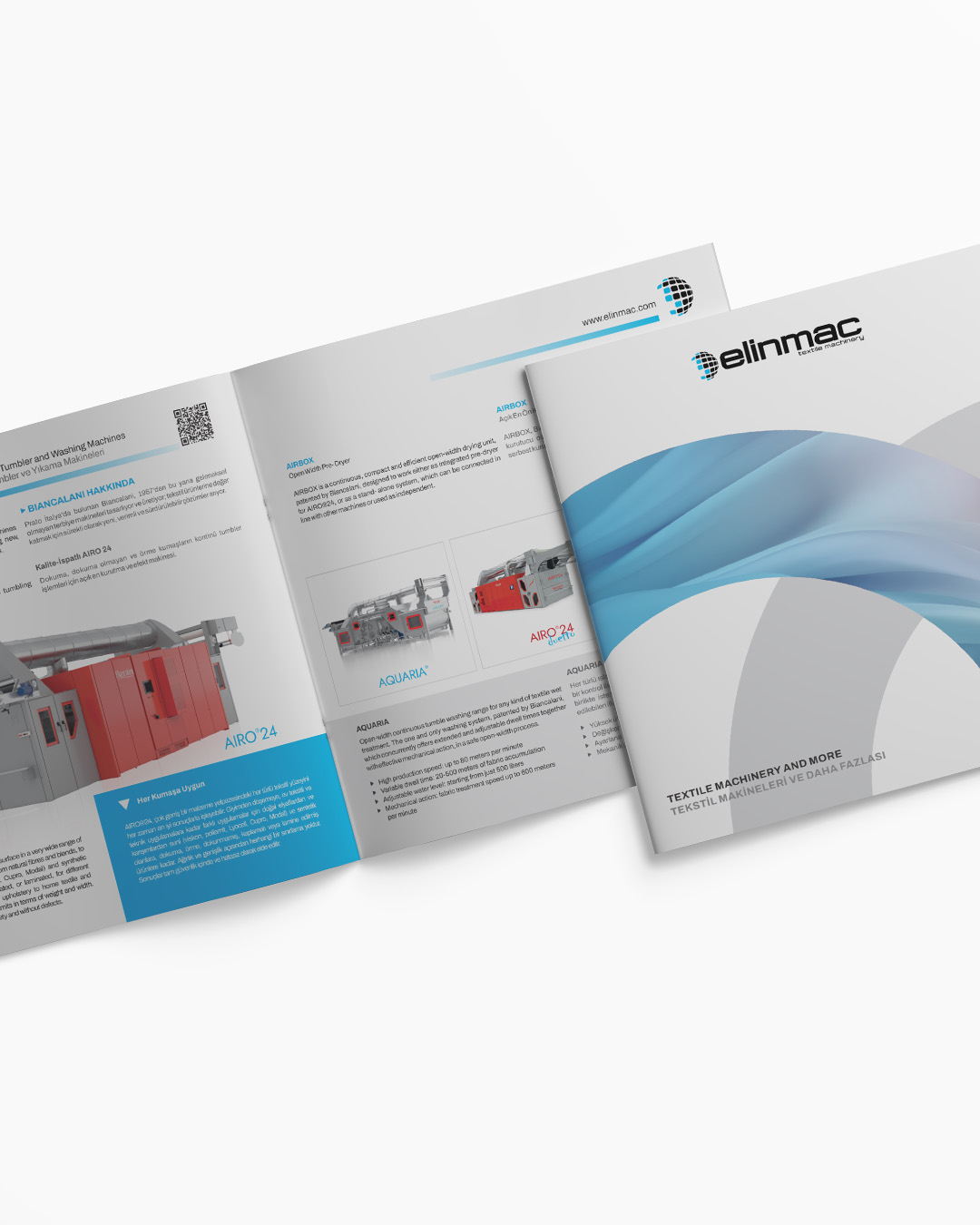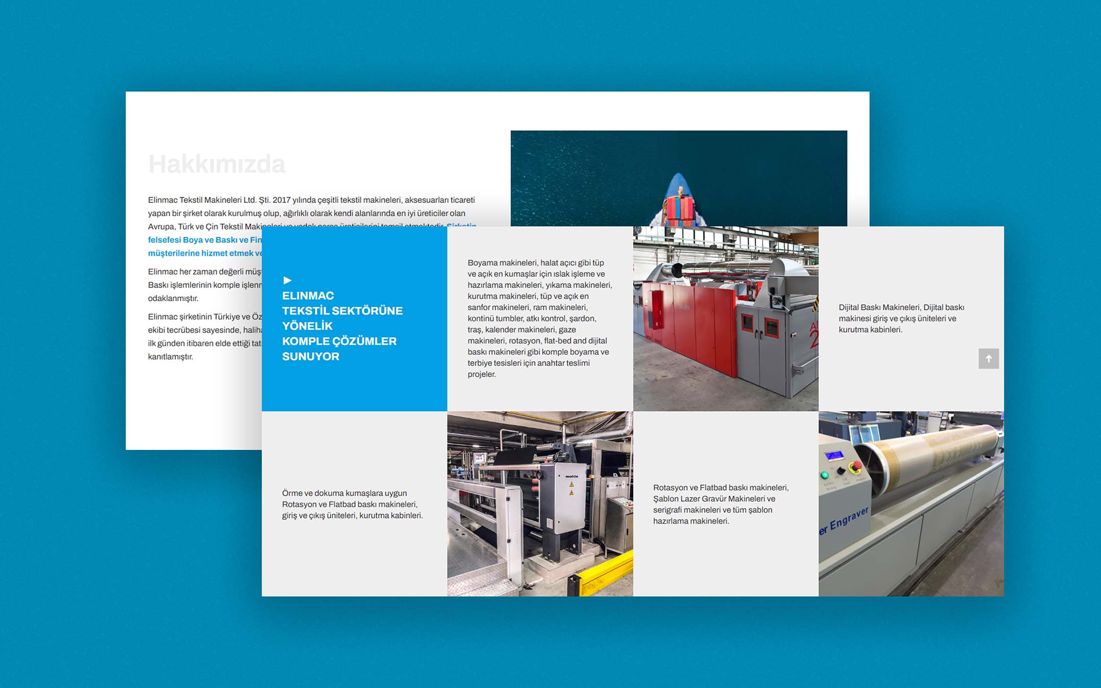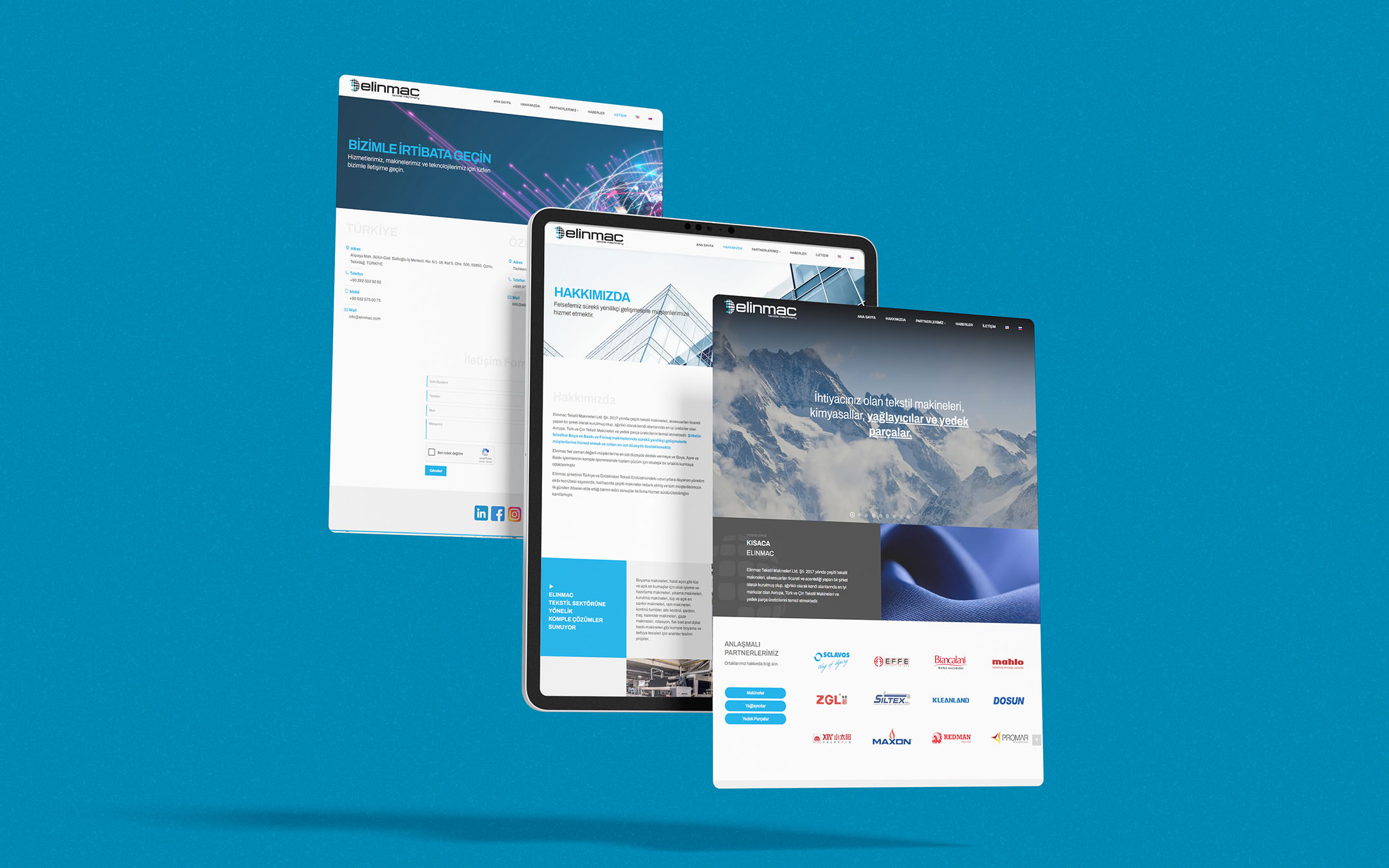 Elinmac için web sitesinden kataloglara, fuar alanı tasarımlarından dergi reklamları ve sosyal medya çalışmalarına kadar uzanan bütüncül bir iletişim dili oluşturduk.
