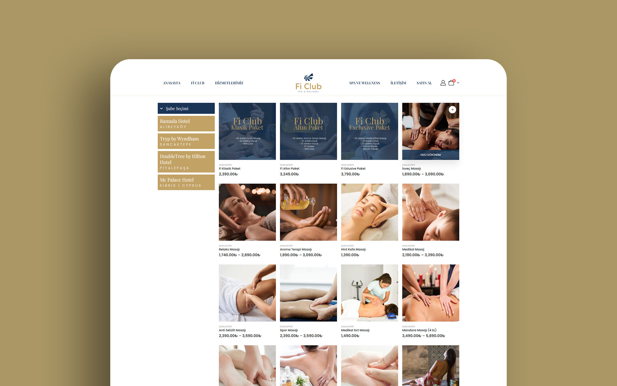 Fi Club Spa için tasarladığımız web sitesi, dinginliğin ve arınmanın ruhunu modern bir dijital atmosferle buluşturdu.