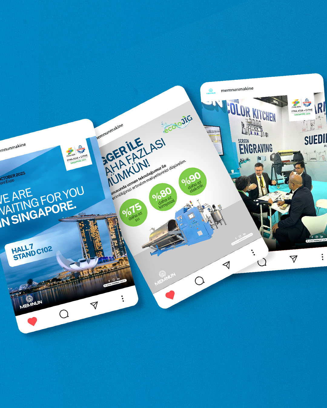 Üretim gücünü ve teknik uzmanlığını yalın ama etkileyici bir estetikle yansıtarak markanın karakterini daha belirgin hale getirdik. Her detayda hissedilen bu bütünlük, Memnun Makine’nin sektördeki iddiasını görünür ve akılda kalıcı bir marka değerine dönüştürdü.
